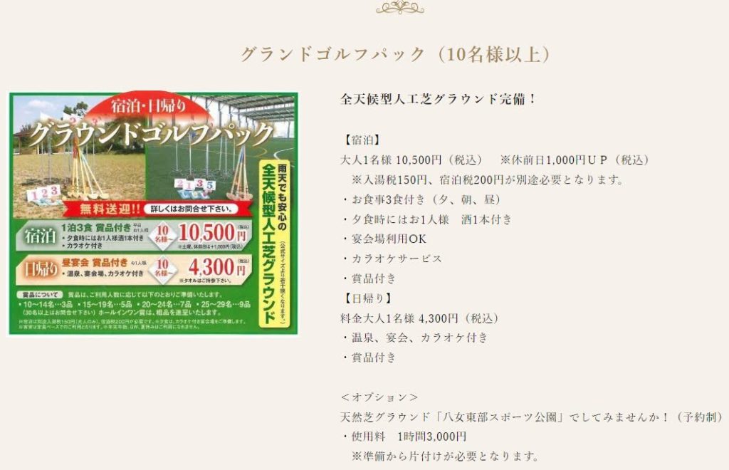 今回の宿泊が「グラウンドゴルフパック」で3食付き、景品付きだったので、