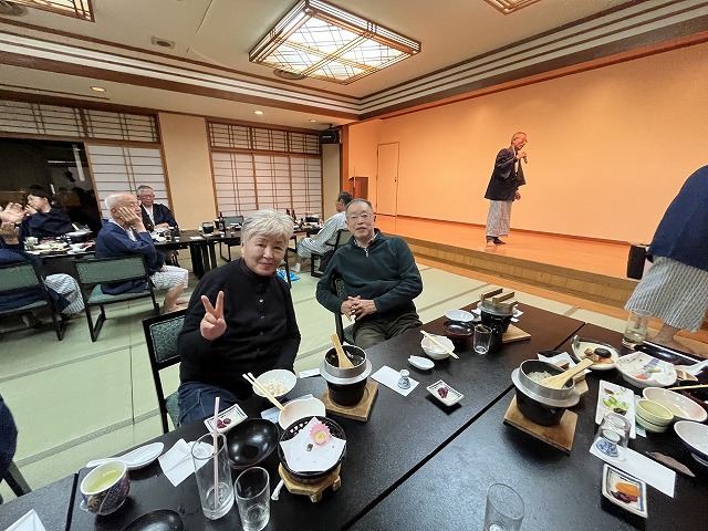 じゃんけんゲームに始まり、カラオケ、踊り、皿回し、などで元気いっぱい笑い転げました。