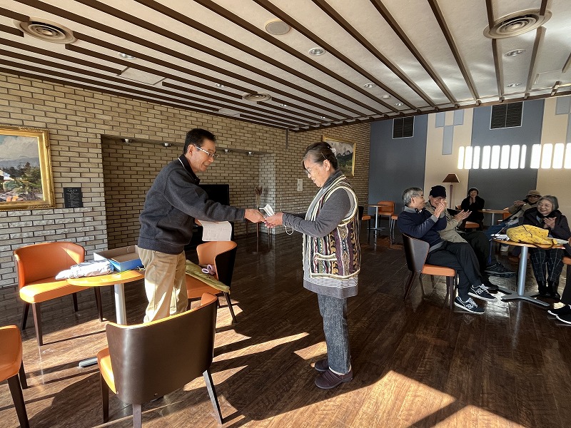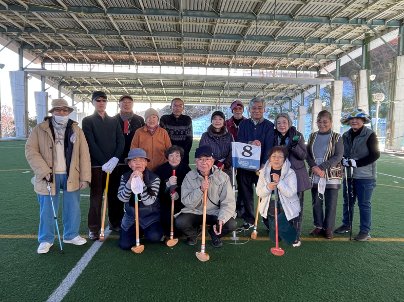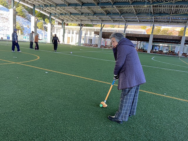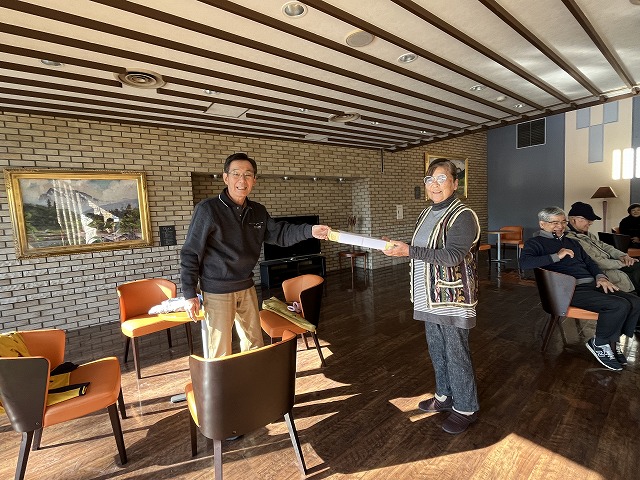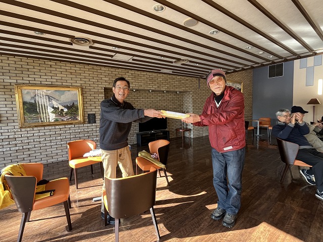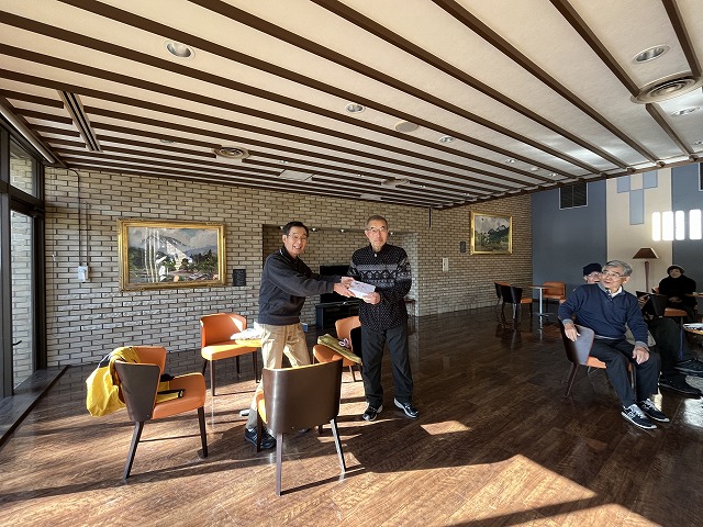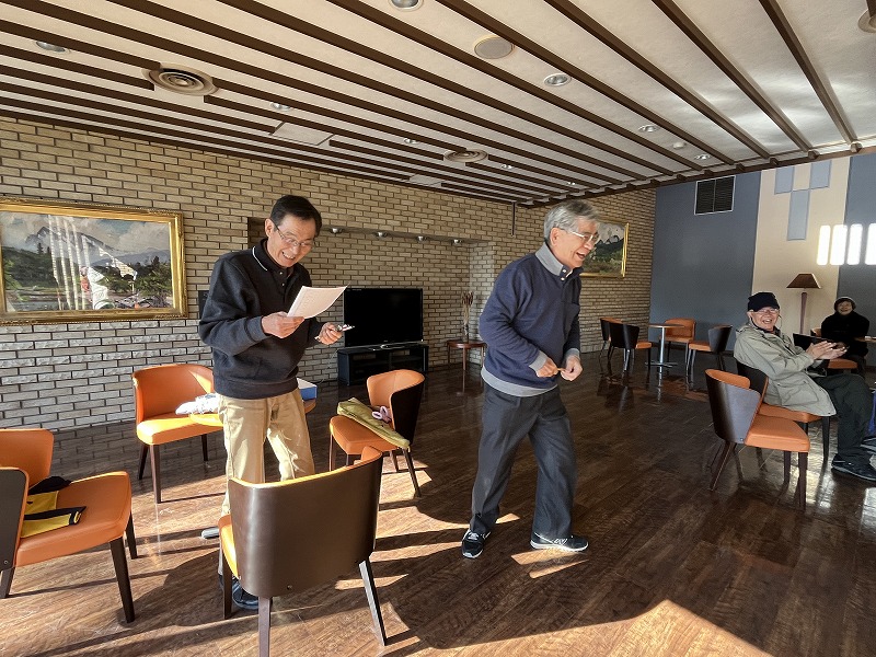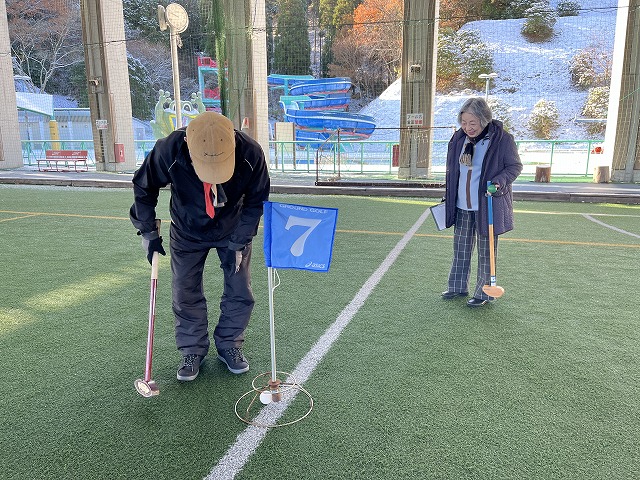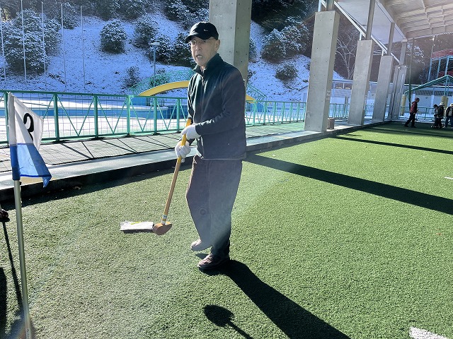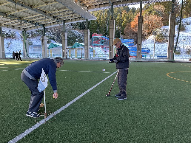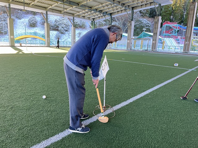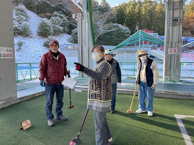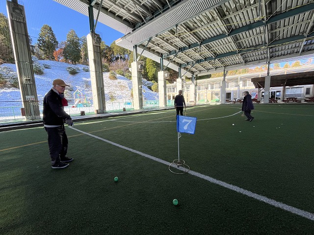 今回の宿泊プランはグランドゴルフパックでしたので、朝からの雪化粧でどうなるかと心配しましたが、全天候型のグランドがあり、事なきでプレイできました。