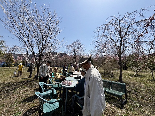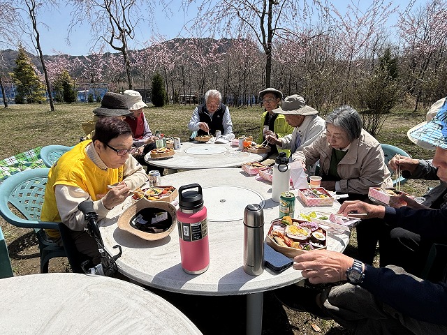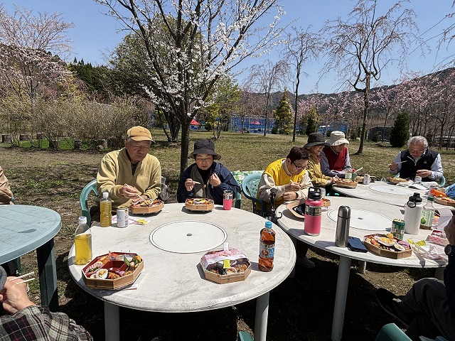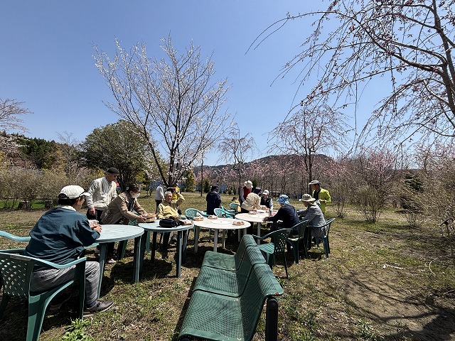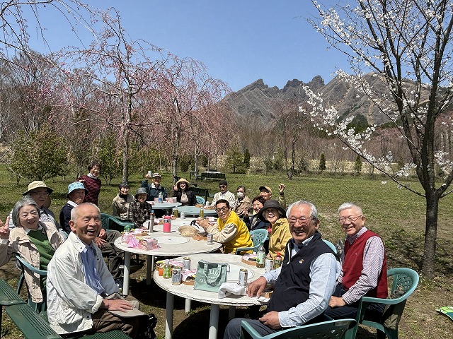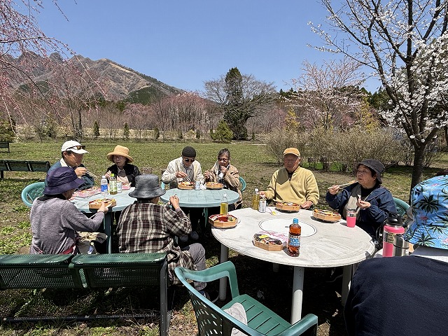 でも、凛とした根子岳に見下ろされながら、少しだけ色付いた桜の木々に囲まれてみんなで開いた弁当